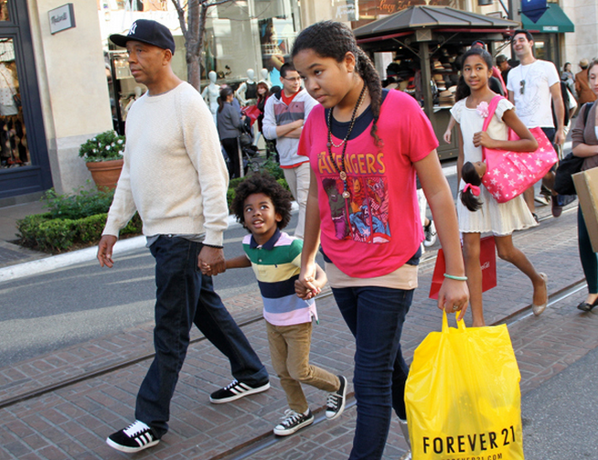 Russell Simmons fait du shopping avec ses enfants